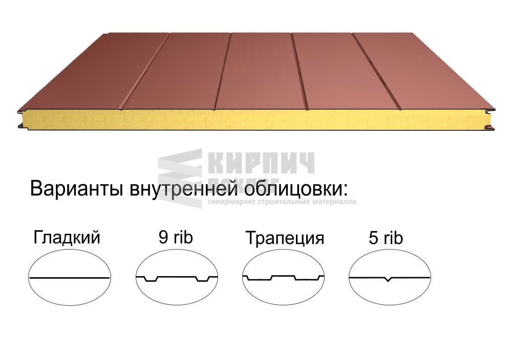 В интернет-магазине "Кирпич Вокруг" Вы можете купить Стеновая трёхслойная сэндвич-панель 5 rib 100мм 1000мм с видимым креплением минеральная вата Полиэстер Доборник в Челябинске, а наши специалисты готовы вам помочь с выбором по адресу: , или оказать консультацию по телефону: .