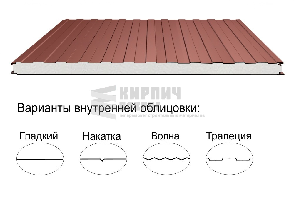 В интернет-магазине "Кирпич Вокруг" Вы можете купить Стеновая трёхслойная сэндвич-панель трапеция 50мм 1190мм с видимым креплением пенополиизоцианурат Полиэстер Металл Профиль в Челябинске, а наши специалисты готовы вам помочь с выбором по адресу: , или оказать консультацию по телефону: .